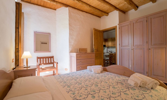 The apartment has a bathroom and a living room with kitchenette.Outside, among vine pergolas and flowering creepers, there are welcoming furnished spaces to enjoy an outdoor meal or a relaxing reading, immersed in the flavors and aromas of a Mediterranean vegetable garden