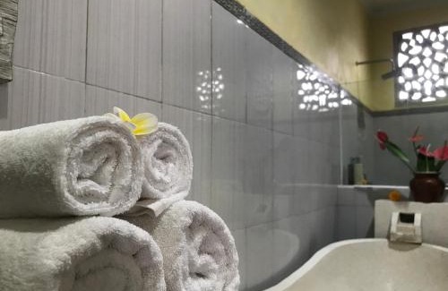 Featuring inner courtyard views, Pondok Sawah Asri in Ubud offers accommodations, an open-air bath, a garden, and a bar. This villa provides air-conditioned accommodations with a patio. The villa features pool views, a year-round outdoor pool, a 24-hour front desk, and free Wifi is available throughout the property. The villa provides guests with a terrace, mountain views, a seating area, a flat-screen TV, a fully equipped kitchen with a toaster and a fridge, and a private bathroom with walk-in shower and a hair dryer. A balcony with an outdoor dining area and garden views is offered in all units. At the villa complex, each unit includes bed linen and towels. Bike rental and car rental are available at this villa, and the area is popular for hiking. Blanco Museum is a 13-minute walk from Pondok Sawah Asri, while Saraswati Temple is 1.2 miles away. Ngurah Rai International Airport is 23 miles from the property, and the property offers a paid airport shuttle service.