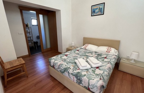 A propriedade é composta por duas casas, cada uma com entrada independente. Possuí 2 quartos, uma suite com cama de casal e outro com uma cama de solteiro e um beliche. Fica num lugar sossegado com uma vista bonita, com um pequeno jardim com árvores de fruto.