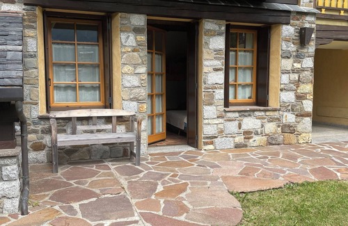 Warm and cozy ground-floor apartment with private garden. An oasis of relaxation just a stone's throw from the ski slopes and the town center, where you can relax and enjoy the beautiful surroundings. The apartment consists of a living room with kitchenette, bedroom with bunk bed and French double bed, plus a bathroom with shower. It also has a private single garage. It is less than a kilometer from the town center and just over a kilometer from Valsozzine Park.
