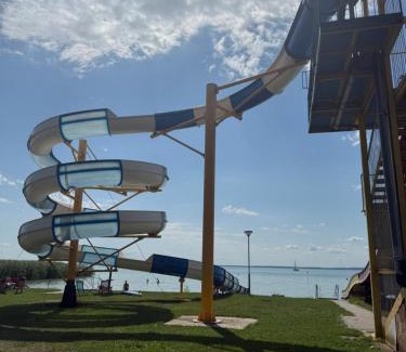 Featuring a garden, Ponton Apartman Alsóőrs offers accommodations in Alsóörs. This beachfront property offers access to a terrace, free private parking, and free Wifi. The apartment features an outdoor swimming pool and private check-in and check-out. The air-conditioned apartment is composed of 2 separate bedrooms, a living room, a fully equipped kitchen, and 1 bathroom. A flat-screen TV is available. The accommodation is non-smoking. Tihany Abbey is 10 miles from the apartment, while Bella Stables and Animal Park is 26 miles from the property. Hévíz–Balaton Airport is 54 miles away.