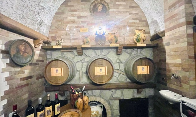 Our wine cellar, inside the villa, is available for guests to taste our wines and our extra virgin olive oil - both of which we export abroad and across Italy.