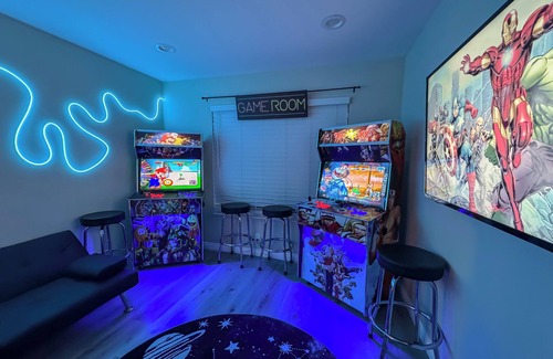 Modern and clean: Six bedrooms total, ARCADE ROOM equipped with TWO arcade machines that has OVER 4,000 GAMES, four bedrooms equipped with queen sized beds, two bedrooms equipped with two queen sized beds and an additional air mattress queen is also provided to accommodate additional guests.