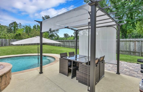 Have fun with the whole family at this fully updated and stylish home with private pool and hot tub. Featuring three spacious bedrooms, two full bathrooms, new gourmet kitchen. This home is situated inside the gates of the luxurious April Sound Country Club community with 27 holes of championship golf available for guest to purchase. Bring your watercraft and dock and store it less than 5 minutes away. The kids will love the two well appointed community parks. Lots of local restaurants too!