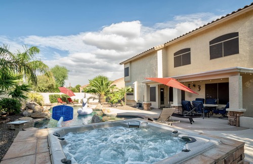 NEWLY Listed Pool & Spa House! Right off the I10 and only Minutes away from Main Event, Starbucks, Top Golf, Parks, Shopping centers, Restaurants, Goodyear Airport, LUKE AFB, Westgate Entertainment District, Diamond Casino, Estrella Falls, Modern Movie Theaters. This home has Large smart TVs & Cox high speed internet & wi-fi. Come Stay and enjoy the Phoenix heat in this huge pool! Full toiletries Supplied!