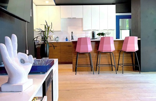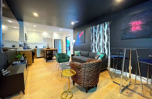 We all know this location is freaking sick. But we're not shallow - we know it's what's on the inside that counts. So we filled this 24-guest capacity 2-property complex with all the selfie backdrops you can handle. Each room is filled with cool art and unique lighting that will make your pics pop! Please note - we're not responsible for maxing out your camera storage.