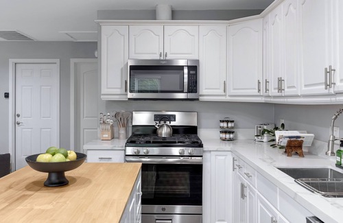 Bella Casa is a bright and modern retreat perfectly designed for comfort and convenience. Inside, you'll find a light-filled living area with plush seating, a flat-screen TV, and a laid-back yet elevated vibe. The fully equipped kitchen features modern appliances, making meal prep a breeze, while the dining area comfortably seats four. Whether you're cooking a homemade meal or grabbing takeout from a nearby hotspot, this space is perfect for gathering and enjoying your time together.