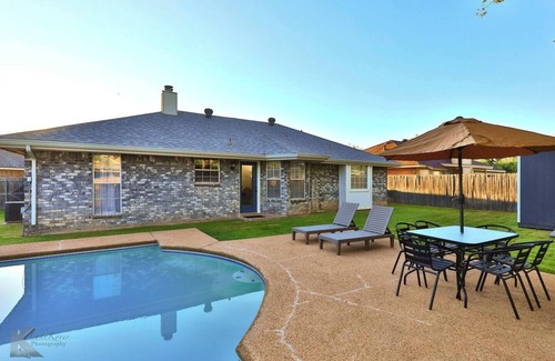 POOL house 6 min to ACU/Airport has 3 Bedrooms , 2 Bathrooms, and max occupancy of 8 people. The minimum rental for this property is 1 nights, but this can change depending on the season you plan on staying. Previous guests have given good rated it, and VRBO labeled it a top-rated House because of the excellent services rendered by the owner or manager of this House, and has consistently provided great experiences for their guests. Most families or guests that use it recommend it to their friends and some of them are repeat guests. House has a friendly neighborhood, and the Abilene has interesting places to visit. If you want to learn more about the House in Abilene, such as places to visit and things to do nearby, you can check below to learn more.