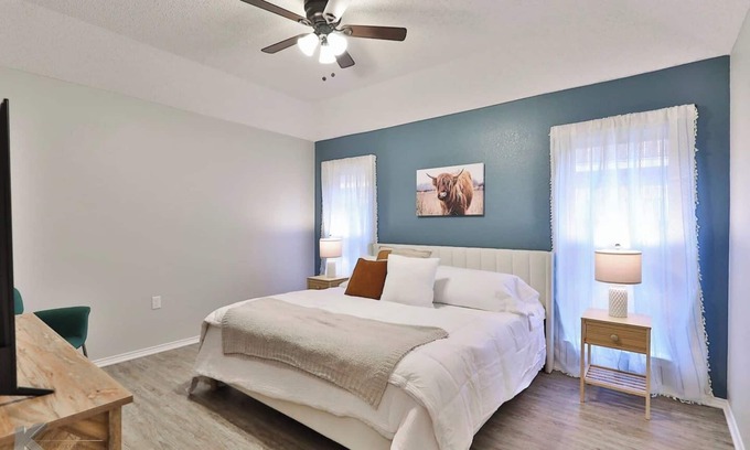 LOCATION!! This recent remodel is 6 minutes to ACU, the airport, downtown and neighbors Abilene's fun filled zoo/Nelson Park. Located in a quiet cul-de-sac, this home offers 3 bedrooms (1 KING), 2 bathrooms, brand new furniture/beds/appliances and a kitchen filled with everything necessary for your short stay.