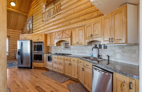 Beautiful and spacious log cabin in Fish Haven, ID, sleeps, 55+ (4 King, 5 Queen, 2 Full, & 21 Twin beds, 9 sleeping mats, 2 Futons, 9 couches). 6 BRs, 1 Semiprivate BR off the Master BR, and 1 large Bunk Room. Easy access to Fish Haven Canyon & Bear Lake for outdoor adventures! Plenty of room to host large gatherings with large kitchen & dining seating 40+ people. Private, indoor heated pool (12.5'x14'x3') set at 85 degrees. A large landscaped yard/playground/patio for outdoor entertainment! High speed WiFi.