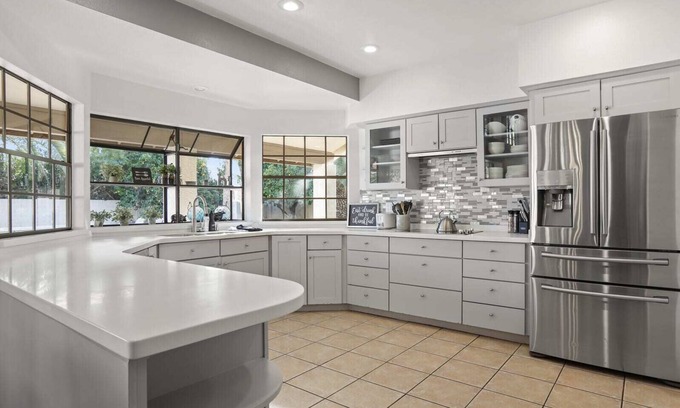 Experience the best of Scottsdale in style at Casa Mojave, a sleek and contemporary rental home. Located close to the Scottsdale Country Club, you'll find plenty of activities to enjoy outdoors, like floating in the salt water pool, relaxing in the jetted hot tub, grilling under the stars, or playing a game of mini golf. Inside, the open-concept common area is sure to impress, with a large sectional, pool table, and fully equipped and spacious kitchen. And you won't want to miss the movie theater, perfect for a night in. Every amenity you need for an unforgettable experience is here at Casa Mojave, so don't miss out