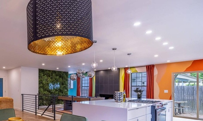 Rank One Stays presents, Stay Golden, a colorful 5-bed, 3-bath escape, perfectly located in the heart of Westminster. Dive into the playful spirit of the West! This house features vibrant décor, disco balls, and a whimsical western theme that promises an unforgettable stay.