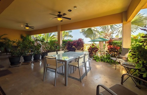 The ocean view Poolside Studio Suite, consists of a queen size bed, bar fridge and coffee maker, sitting area, double size sofa bed, coffee table, large travertine and granite bathroom with shower, access to pool with its own individual balcony terrace, and outdoor patio with table and chairs for out side dining . Entry to each suite is from the lush tropical courtyard into a common area consisting of a comfortable sectional sofa with ample seating, WIFI, large satellite TV, guest computer system and full equipped kitchenette and laundry facilities available on the same level. This common area is a shared location with the adjoining poolside suite only .