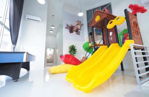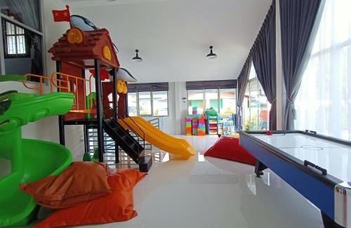 Featuring barbecue facilities, Pool villa 3 BR 10 Persons 5-min to tiger zoo - Njoy Pool villa offers accommodations in Si Racha. The air-conditioned accommodation is 7.3 miles from Bangpra International Golf Club. The villa also provides free Wifi, free private parking, and facilities for disabled guests. Providing a terrace and garden views, the spacious villa includes 3 bedrooms, a living room, cable flat-screen TV, an equipped kitchen, and 4 bathrooms with a shower. Towels and bed linen are provided in the villa. For added privacy, the accommodation has a private entrance and is protected by full-day security. For guests with children, the villa features kids pool, an indoor play area, and a children's playground. Guests can also relax in the garden, next to the outdoor swimming pool, or in the shared lounge area. Crystal Bay Golf Club is 10 miles from Pool villa 3 BR 10 Persons 5-min to tiger zoo - Njoy Pool villa, while Flight of The Gibbon is 13 miles away. U-Tapao Rayong-Pattaya International Airport is 38 miles from the property.