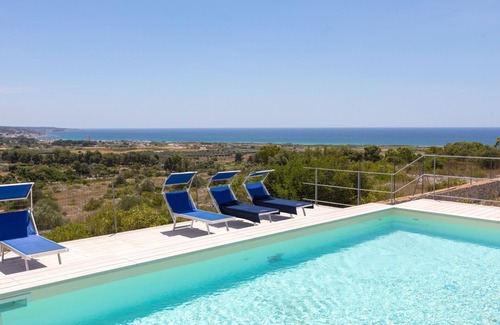 Recently fully renovated, upscale hilltop villa with uninterrupted panoramic views of the vast countryside and the Ionian Sea. The villa is located on a large private plot and has several terraces and a large pool (approx. 8x5m) for your exclusive, private use. Several beaches with fine, golden sand and crystal clear water are only 3-4 km away.