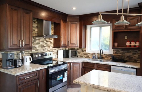 Everything is on one level—no stairs—featuring three bedrooms, two full bathrooms, a fully equipped kitchen, and private parking. Minutes from downtown Brampton and local restaurants, this retreat offers comfort, convenience for lasting memories.