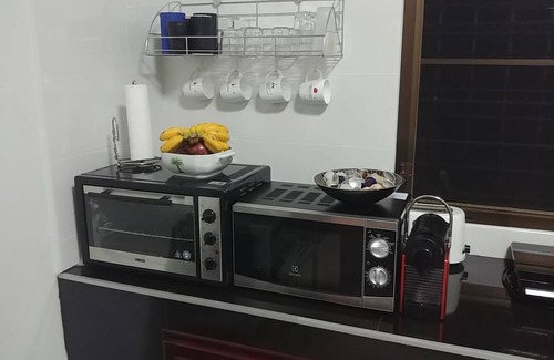As you settle into this 2-bedroom, 2-bathroom rental, you'll find a BBQ grill, air conditioning, and a printer. Bathroom amenities include a hair dryer, towels, and toilet paper. The kitchen is equipped with an oven, a stovetop, and a refrigerator, as well as a coffee maker, an electric kettle, and an ice maker. And there is a laundromat nearby so you can pack a bit lighter.