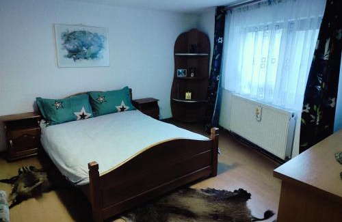 Featuring a garden, Popasul Poiana Mărului provides accommodations in Poiana Mărului. This property offers access to a balcony, free private parking, and free Wifi. Outdoor seating is also available at the vacation home. Providing a terrace with garden views, this vacation home also provides guests with a flat-screen TV, a well-equipped kitchen with a microwave, a fridge, and a stovetop, as well as 1 bathroom with a shower and slippers. For added privacy, the accommodation has a private entrance and soundproofing. Bran Castle is 10 miles from Popasul Poiana Mărului, while Dino Parc is 11 miles away. The nearest airport is Brașov-Ghimbav International Airport, 21 miles from the accommodation.