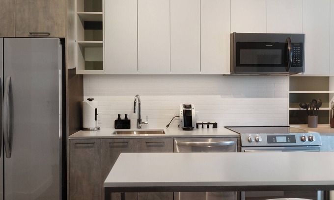 Inside, you'll discover a spacious open floor plan featuring floor-to-ceiling windows, sleek finishes, and designer furnishings that create a warm and inviting atmosphere. The fully equipped kitchen includes stainless steel appliances, quartz countertops, and all the essentials for preparing a delicious meal. Whether you're visiting for business or leisure, high-speed Wi-Fi and smart home features ensure a seamless and comfortable stay, making this the perfect home away from home. This modern oasis caters to every type of traveler, whether you're here for work, sightseeing, or a weekend getaway, ensuring a truly memorable experience. During your stay, enjoy exceptional building amenities, including a state-of-the-art fitness center, a rooftop lounge with stunning city views, co-working spaces, and a serene courtyard for relaxation after a long day. With Metro stations, bike shares, and major highways just steps away, navigating DC has never been easier.