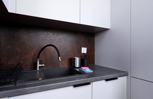 Popowice Deluxe Apartment is a stylishly furnished apartment that features a living room with a kitchenette, a bedroom with a comfortable king-size bed, a bathroom, and a balcony where guests can relax and enjoy a morning coffee or an evening glass of wine. Guests have access to a range of practical amenities, including free Wi-Fi, a TV, a washing machine, an iron, a hairdryer, a dishwasher, an oven, a fridge with a freezer, an induction hob, a coffee maker, and kitchen utensils.