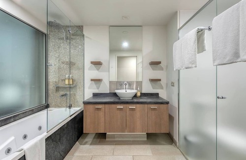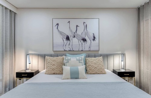 When it's time to retire, a comfortable king bed awaits with a Smart TV to stream your favourite shows. A modern ensuite offers the option of a quick rinse in the shower or a relaxing soak in the bath. French Christian Lacroix 'Butterfly' signature range of toiletries is provided for your convenience.