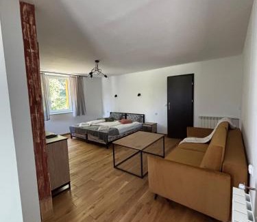 Food & DrinkTea/Coffee makerBathroomShower, Private bathroom, Toilet, Toilet paper, TowelsMedia & TechnologyTV, Flat-screen TVKitchenKitchenette, Electric kettle, RefrigeratorGeneralTrash cans, Private entrance, Heating, Hardwood or parquet floors, Key accessLiving AreaSofaBedroomWardrobe or closetRoom AmenitiesClothes rack, Sofa bed |