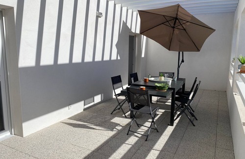 Upstairs: Access to the large east-facing terrace (garden furniture) via the 2 upper bedrooms: 1 air-conditioned bedroom (2 single beds, storage), 1 air-conditioned bedroom (1 double bed, 1 baby bed, storage), 1 shower room-toilet. You have access to two private and secure parking spaces in the residence.