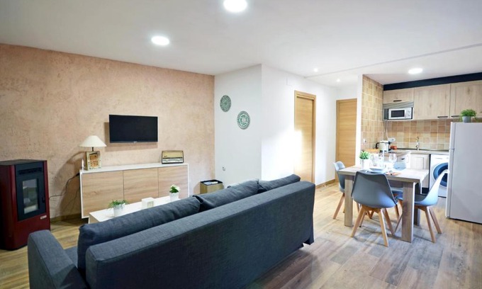 Featuring city and quiet street views, this apartment also offers free Wifi. This apartment includes 1 bedroom, a living room and a flat-screen TV, an equipped kitchen with a dining area, and 1 bathroom with a walk-in shower and a washing machine. Towels and bed linen are provided in the apartment. The accommodation is non-smoking. The nearest airport is Valencia Airport, 115 miles from PORTAL DE MOLINA 1 - Piso acogedor en el caso histórico de Albarracín.