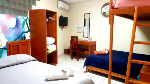 Posada Los guitos has accommodations in Xilitla. At the inn, every room comes with a desk and a flat-screen TV. At Posada Los guitos, rooms contain air conditioning and a private bathroom.
