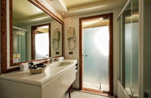 BathroomTowels, Shampoo, Bathtub or shower, Toilet paper, Body soap, Free toiletries, Hairdryer, Private bathroom, Bathtub, Slippers, Conditioner, Toilet, ShowerGeneralKey card access, Air conditioning, Interconnecting room(s) available, Private entrance, Tile/Marble floor, Heating, Safe, Trash cans, Smoke Alarm, Hardwood or parquet floors, SoundproofMedia & TechnologyTelephone, TV, Flat-screen TV, Satellite channelsOutdoorsBalcony, Outdoor furnitureKitchenDryer, RefrigeratorViewSea view, ViewServicesWake-up serviceBedroomLinens, Wardrobe or closetPool and SpaPool towelsRoom AmenitiesSocket near the bed |