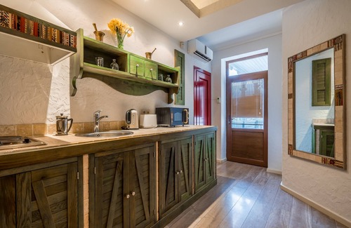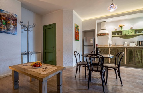 The apartment is a duplex, with two bedrooms each with its own bathroom. The living room and kitchenette lead you to a traditional wooden balcony - a landmark of Georgian architecture. Enjoy Georgian wine, or a cup of coffee on that balcony, while embracing the history of this interesting and culturally rich city.