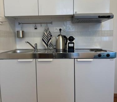 Food & DrinkTea/Coffee makerBathroomHairdryer, Towels, Body soap, Shower, Private bathroom, Bathtub or shower, Shampoo, Toilet paperMedia & TechnologyTV, Flat-screen TVKitchenWine glasses, Stovetop, Kitchenette, Dining table, Kitchenware, Coffee machine, Electric kettle, RefrigeratorGeneralInterconnecting room(s) available, Trash cans, Fire extinguisher, Hardwood or parquet floors, HeatingLiving AreaSofaBedroomLinens, Wardrobe or closetAccessibilityEntire unit located on ground floorBuilding CharacteristicsPrivate apartment in buildingRoom AmenitiesClothes rack, Non-feather pillow, Sofa bed, Socket near the bedViewQuiet street view |