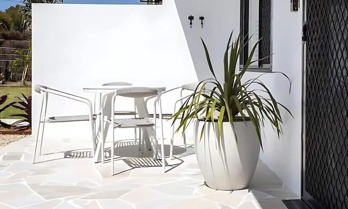 The unit has an outdoor patio area exclusively for the guests of the 1 bedroom unit, and large beautiful common garden and lawn areas for all guests of Pottsvillas invited to enjoy.