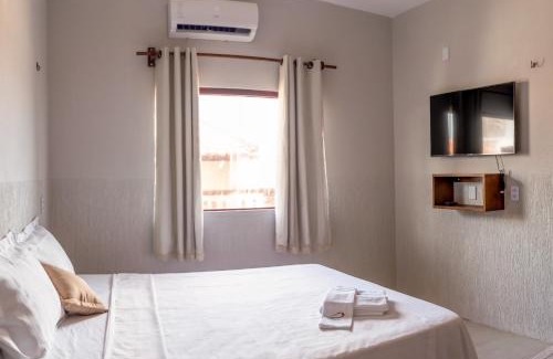 Pousada Rota do Kite Preá is located in Prea, within 115 feet of Prea Beach and 5.8 mi of Pedra Furada. With an outdoor swimming pool, the 3-star hotel has air-conditioned rooms with free WiFi, each with a private bathroom. The hotel features a terrace and a 24-hour front desk. Rooms come with a wardrobe and a flat-screen TV, and some rooms at the hotel have a balcony. At Pousada Rota do Kite Preá the rooms include bed linen and towels. A buffet breakfast is available each morning at the accommodations. Dune Por do Sol is 8.1 mi from Pousada Rota do Kite Preá, while Jericoacoara Lighthouse is 5.8 mi from the property. The nearest airport is Ariston Pessoa Regional, 11 mi from the hotel, and the property offers a paid airport shuttle service.