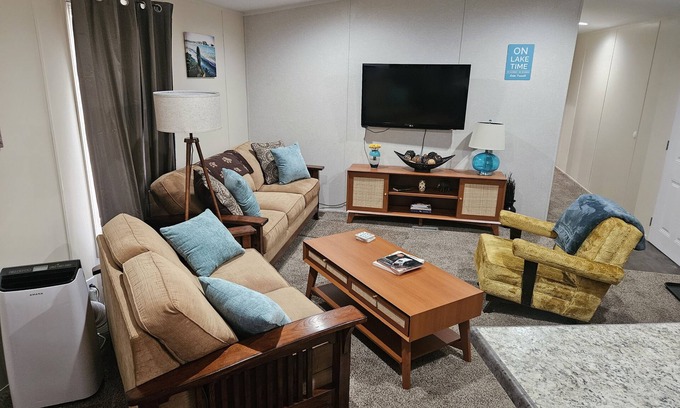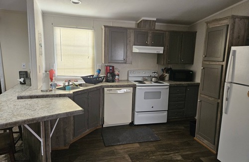 The space is newly renovated 3 bedroom/2 bath 2017 manufactured home. Fully fenced, graveled and gated yard with plenty of room for boats and RVs. A master bedroom/bath, spare bedroom and a office w a futon. A fully stocked kitchen, Wi-Fi, 3 tvs in the home , and dog friendly.