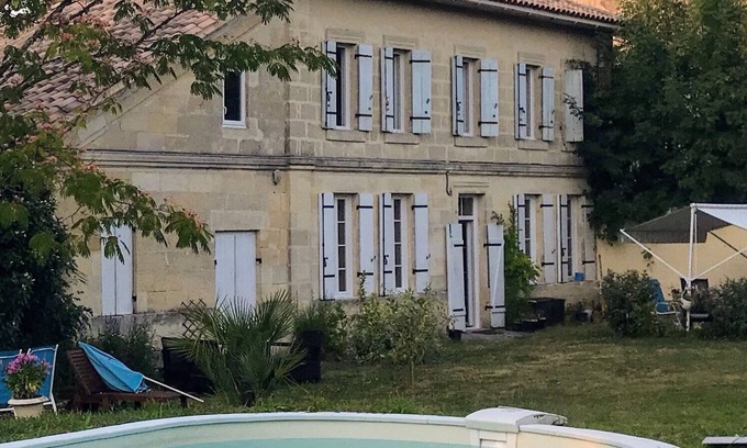Près ST EMILION Gîte 4 à 7 personnes 2 à 4 ch CLIM WIFI PISCINE JARDIN TERRASSE | House in Lagorce