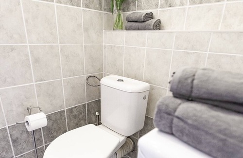 Prepare a home-cooked meal in the kitchenette, complete with an oven, a stovetop, and a refrigerator, as well as an espresso maker, an electric kettle, and a microwave. Bathroom amenities include a hair dryer, towels, and toilet paper. And you won't have to pack extra clothes, because you'll also have a washing machine. Other amenities include bed sheets, an ironing board, heating, and a portable fan.