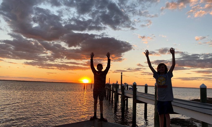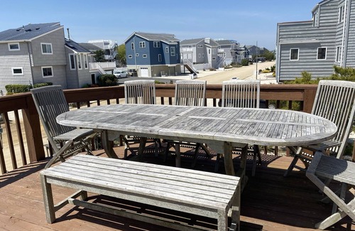 Daily sunset facing main deck. After a day at the beach, jump in the hot tub, play some ping pong or shoot some hoops in front of the house. Looking for something different, take the kayak/paddleboard down to the bay or ride a bike into town for ice cream or an evening drink. My favorite part is that we are less than a block to either the bay or to private beach access point so no crowds !
