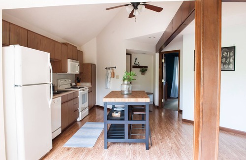 Welcome to Haven and Hill, a freshly renovated second tier villa in the treetops of Osage Beach, MO. This quaint second tier Villa situated in the woods overlooking the beautiful Lake of the Ozarks is only minutes away from a town full of life! Bagnell Dam strip, restaurants, night life, and shopping are only a short drive away! This individual Villa features 1500 square feet with 3 bedrooms 2 ½ bath to sleep 6 or 8 guests maximum. If two or more guests are under the age of 5, we will allow up to 10 guests per Villa. All linens and towels are furnished.