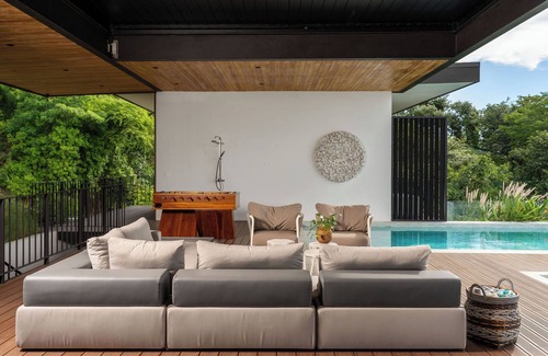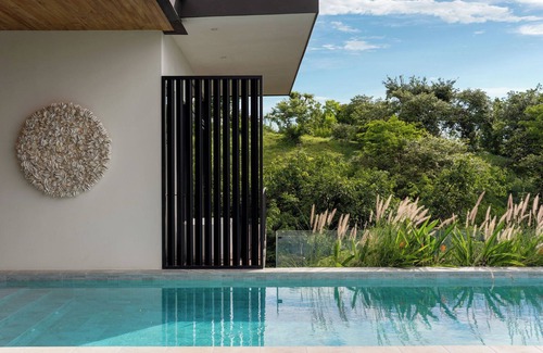 Villa Sándalo is a five bedroom modern masterpiece overlooking Tamarindo Bay and the Las Baulas Marine National Park and Estuary system. Originally designed by Richard Muller with interior and additional design work done by WR architects, this is a very special property.