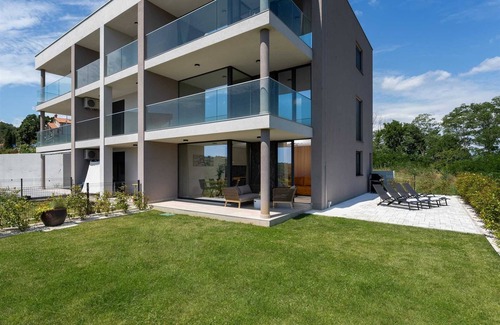 Apartment Sunshine is located on the ground floor of a residential building. The fully fenced garden area and patio offer a minute's walk to restaurants, bars, a small grocery shop, the old city of Labin, and the city center of Labin. The nearest beaches in Rabac are an 8-minute drive away, while supermarkets are just a 4-minute drive. The apartment spans a total area of 75 m², featuring a 14 m² covered terrace, garden and patio area with over 100 m².