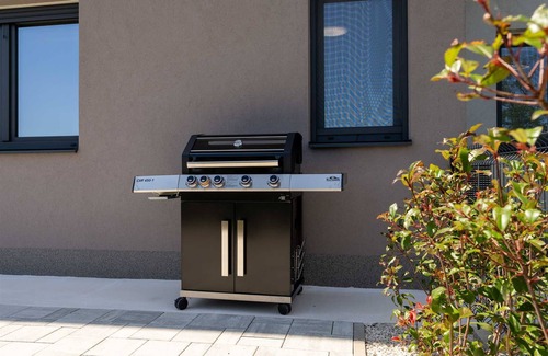 TERRACE & PATIOThe covered terrace of 14 m² features a lounge outdoor furniture for enjoying morning breakfasts. Additionally, there is a 40 m² patio with a gas BBQ and four deck chairs. From there, you can enjoy a distant view of the island Cres—a striking sight, especially at night. The patio and sea invite visitors to linger, relax, and enjoy each other's company.