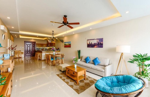 Boasting an outdoor swimming pool, a shared lounge, and a terrace, Premium Beach Condotel 5 offers accommodation in Vung Tau with free WiFi and sea views. Set on the beachfront, this property has a restaurant and a bar. Offering a balcony and city views, the apartment includes 3 bedrooms, a living room, satellite flat-screen TV, an equipped kitchen, and 3 bathrooms with a bidet and a shower. Towels and bed linen are offered in the apartment. The apartment offers a children's playground. Both a bicycle rental service and a car rental service are available at Premium Beach Condotel 5, while hiking and cycling can be enjoyed nearby. Back Beach is 200 metres from the accommodation, while Nghinh Phong Cape is 3.3 km from the property. The nearest airport is Vung Tau, 3 km from Premium Beach Condotel 5, and the property offers a paid airport shuttle service.