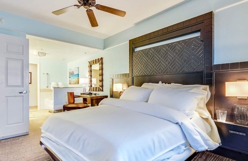 Step into your home away from home – spacious villa accommodations adorned with modern comforts and breathtaking views of the island. Embrace the island life with a full kitchen for culinary adventures, separate living and dining area for quality family time, and a private lanai that offer front-row seats to the resort and island's beauty. As the day winds down, unwind in your master bathroom's luxurious soaking tub, or stay connected with complimentary high-speed Wi-Fi. Your villa is more than just a place to stay; it's a sanctuary where relaxation and luxury harmonize.