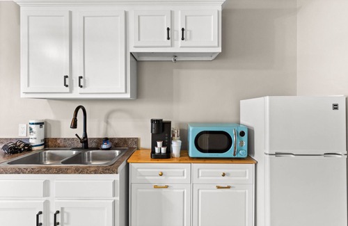 Units includes two double beds, small kitchen sink area with dishes and dining space for 2, microwave, mini fridge, RoKu TV, Keurig coffee maker, all linens (not beach towels) and private bathroom-Note** Not all units look the same!! Guests have access to 2 pools on the property and a lounging patio, BBQ grill and outdoor games. The beach and boardwalk are about 2 blocks away-just a short walk! Restaurants are within walking distance along with local shops and must see attractions. Pets are not allowed in these rooms.