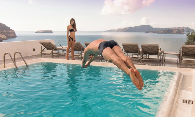 Yes, this Santorini villa has a swimming pool. Check the Facility Overview section for details about the pool and other available facilities.