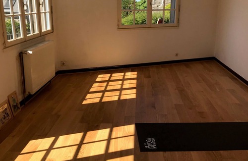 - A large, empty room used as a yoga room or games room, with an 8 m² balcony.