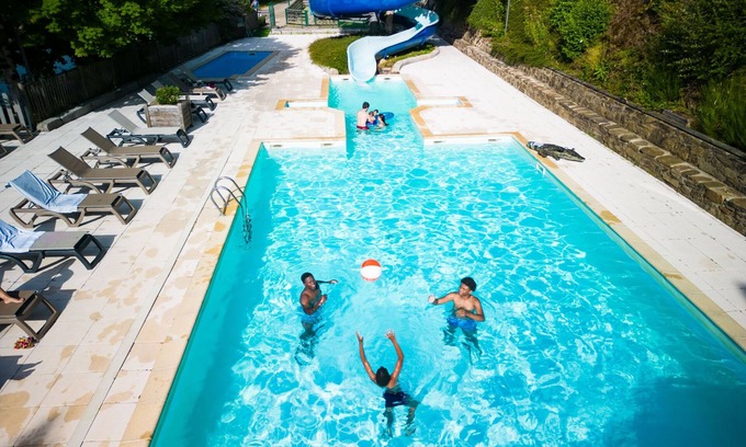 Thérondels: Please note: WiFi network access is only available at the reception and swimming pool. Holiday village "Camping Sunélia La Source". In the resort Thérondels, in a secluded, quiet position, 50 m from the edge of the forest, 50 m from the lake. For shared use: terraced garden, swimming pool angular (130 m2, seasonal availability: 15.Jun. - 15.Sep. pool opening hours: 10:00-19:00). Children's pool, slide, tennis, basketball, boccia, volleyball, children's playground, bathing place. In the house: reception, restaurant, bistro, WiFi, billiard table, playroom, table football, trampoline, shopping facilities. Bus stop "Le lioran" 33 km, bathing lake "Lac de Sarrans" 50 m. Nearby attractions: Presqu'île de Laussac 20 m, Abbatiale de Conques, Laguiole et sa coutellerie, Chateau de Vallon, Centre Natura Bien Etre, Ballades pédestres et VTT. Well-known lakes can easily be reached: Lac de Sarran, Gorges de la Truyere. Hiking paths: Sentier de l'Imaginaire, Parc National de l'Aubrac, Monts du Cantal. Please note: car recommended. Entertainment in the season. Baby equipment (extra), childminding in the season. The photograph shows a typical example.