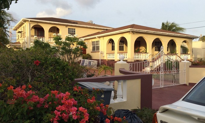 Livingstone Court is a Very spacious home in prestigious Atlantic Shores. Home is across the street from the ocean with ocean views. The rental unit has 2 bedrooms, It has a Huge Living Room, Large formal Dining Room, Large eat-in kitchen , and Large front Veranda on the ground floor. 2 Bedrooms , 1 bathroom, large Sitting/TV room and Veranda are on the 2nd floor. Bedrooms are spacious and nicely furnished. Both bedrooms have queen beds and there is a Sofa bed in the TV room. Home is a 2 minute walk to Freights Bay Surfing spot and a 10 minute drive to Miami beach and Oistins. There is friday and Saturday night Fish Fry in Oistins. In Oistins there is a supermarket, ATM, restaurants, Bars, other entertainment and transportation to Bridgetown and most parts of the island. St. Lawrence gap (Entertainment center) is a 10 minute drive from Oistins. There is off the street parking at the house if needed.
