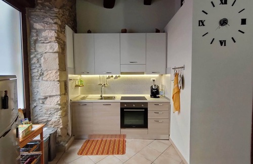 Studio apartment in the historic part of the town, recently renovated. It is an independent studio appartment of 40 sqm. The original structure made of wood and stone is in harmony with functional and new furniture. It's composed by kitchen, living room, bathroom and night area. The room is air-conditioned and free wi-fi is available.